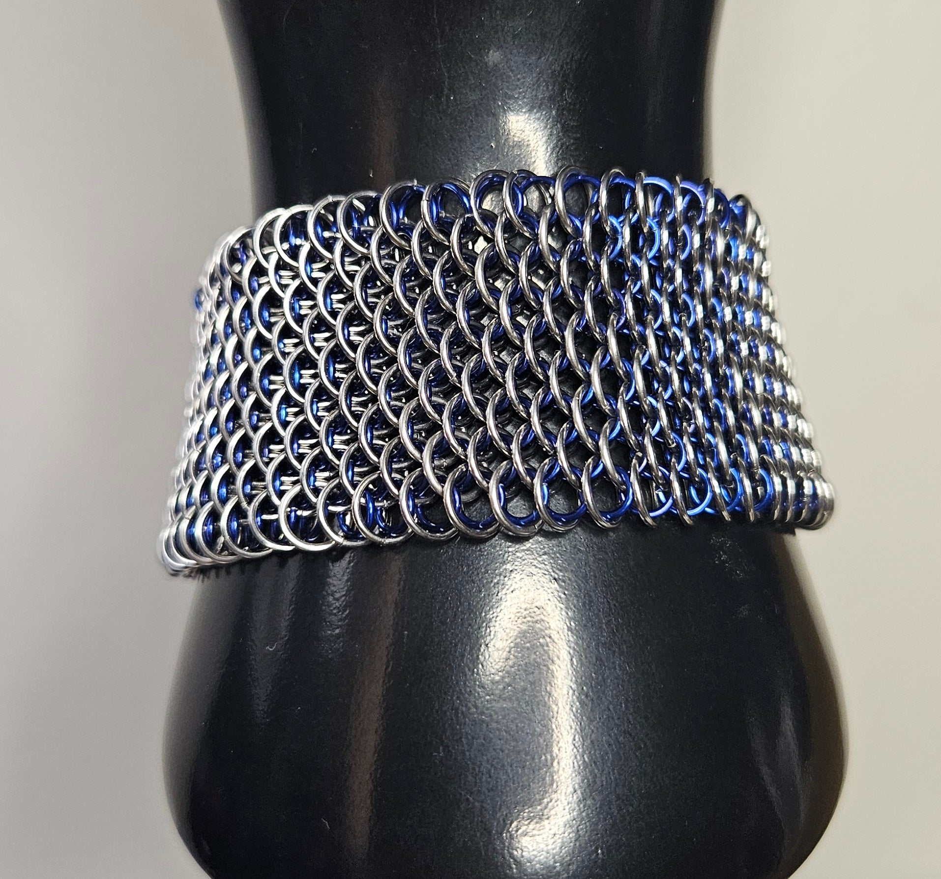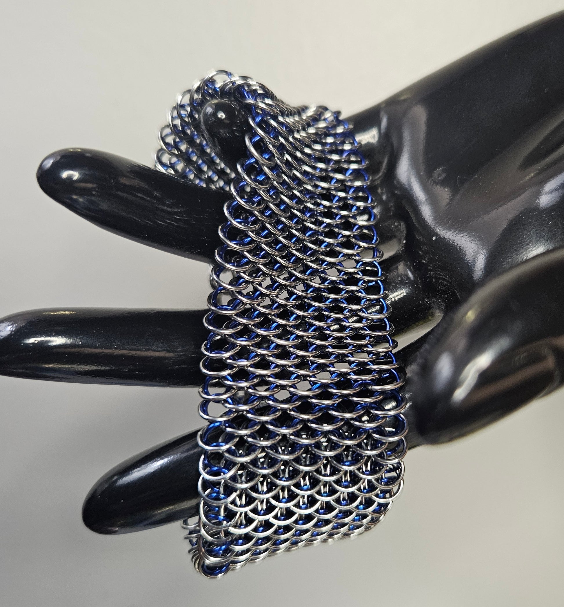 Add a pop of color and an air of sophistication to your jewelry collection with this micromaille cuff bracelet. It’s a perfect blend of elegance, durability, and modern design. Order yours today to showcase your unique style!